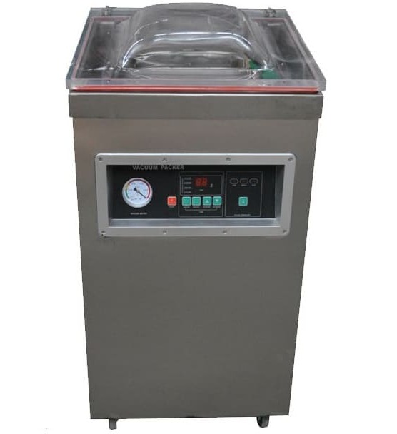 Single chamber 500-2D vacuum packaging machine is featured by automatic processing of vacuuming, sealing, printing, cooling in one operation.
